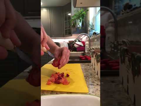 If knife work isn’t your game, check out this brief video of my hollowing out my berries. It begins with a straight slice across the top of the berry. From there, follow the light white ring and angle your knife inwards, like you’re trying to cut a cone shape out of the berry (because that is the goal here).
